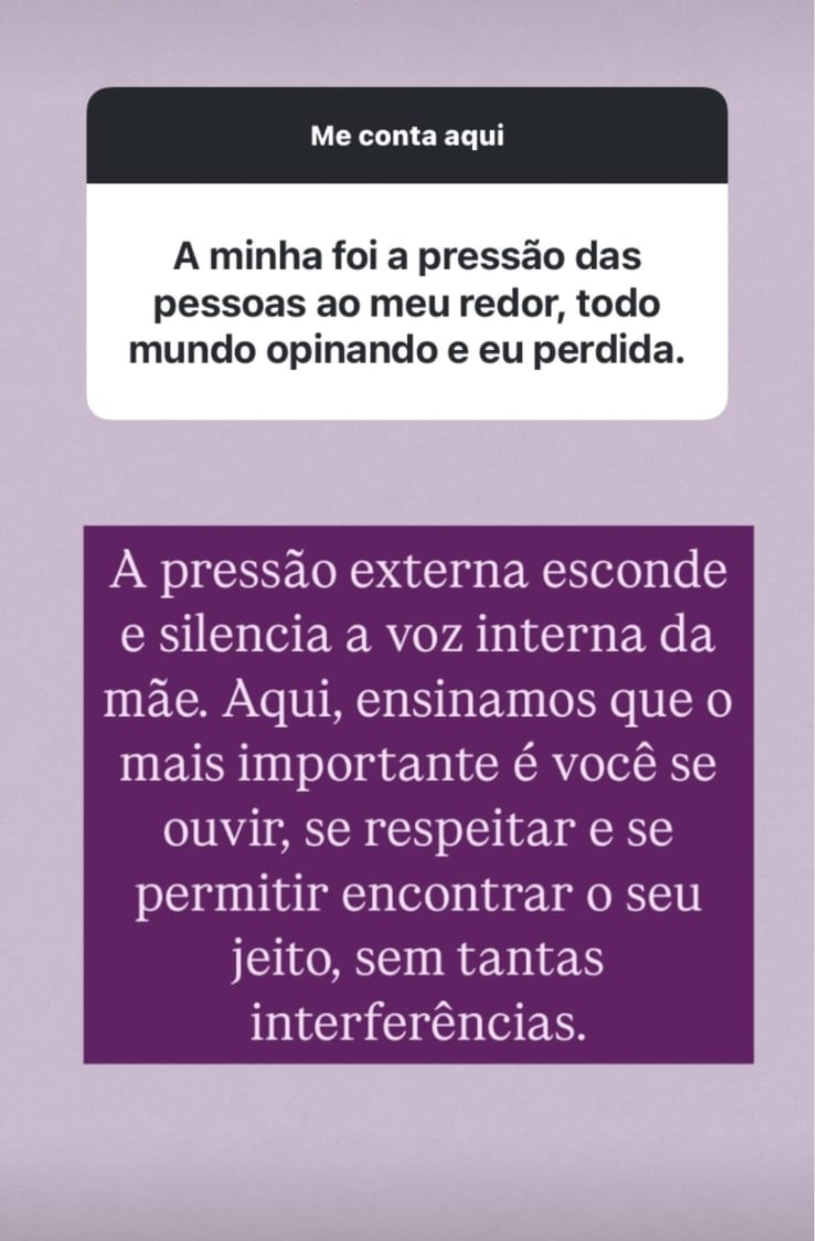 “A pressão externa muitas vezes silencia a voz interna da mãe.